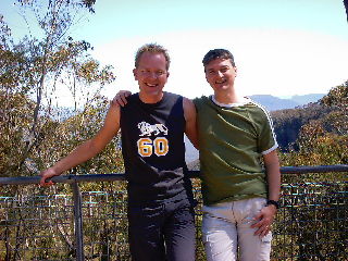 Om 06:30 ging de wekker om een trip te maken naar de Blue Mountains. Met een bus vol nichten en potten, onder bezielende leiding van Colin. Het was Colin's 2e tour maar met die nichtenhumor lagen we constant in een deuk. René had kennelijk te weinig slaap gehad want die dutte steeds weg en miste dus de spannende uitleg over de Blue Mountains. De eerste stop was bij een geweldig uitzicht over de australische Grand Canyon. Er was veel lawaai van een insekt dat 7 jaar onder de grond zit en 2 weken boven de grond. Hij gaat in die 2 weken snel paren om daarna dood te gaan. Waarom ze dit lawaai maken kan alleen maar zijn om de toeristen te pesten, volgens de gids. Dan weer snel op weg naar een mijnwerkersplaatsje in de bergen. Met een treintje over een oud railtje 52 graden afdalen door een smalle donkere rotsschacht richting een regenbos.